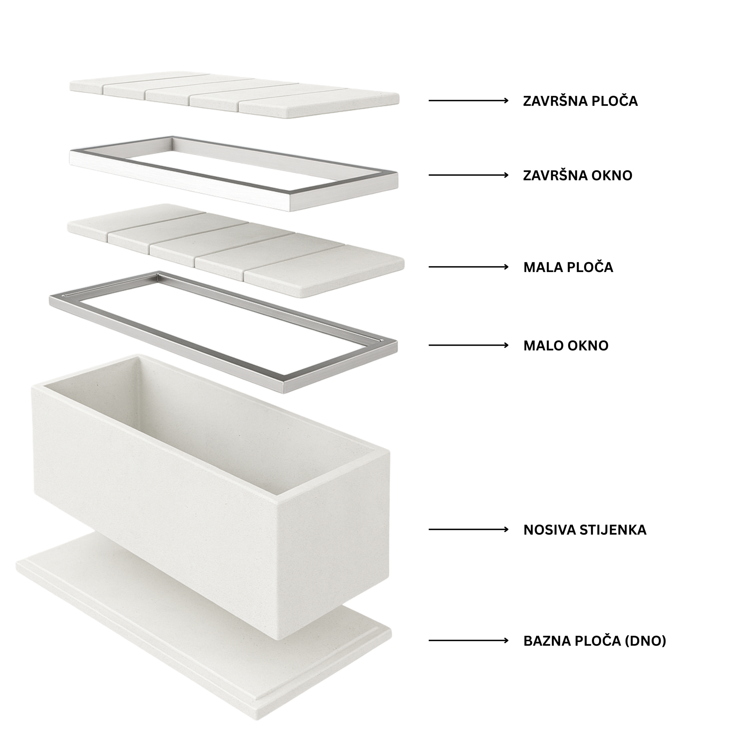 Bazna ploča (dno grobnice) je armirano-betonski element visoke nosivosti, precizno izrađen kako bi osigurao stabilnu, dugotrajnu i pouzdanu osnovu za kompletan nadgrobni sistem.