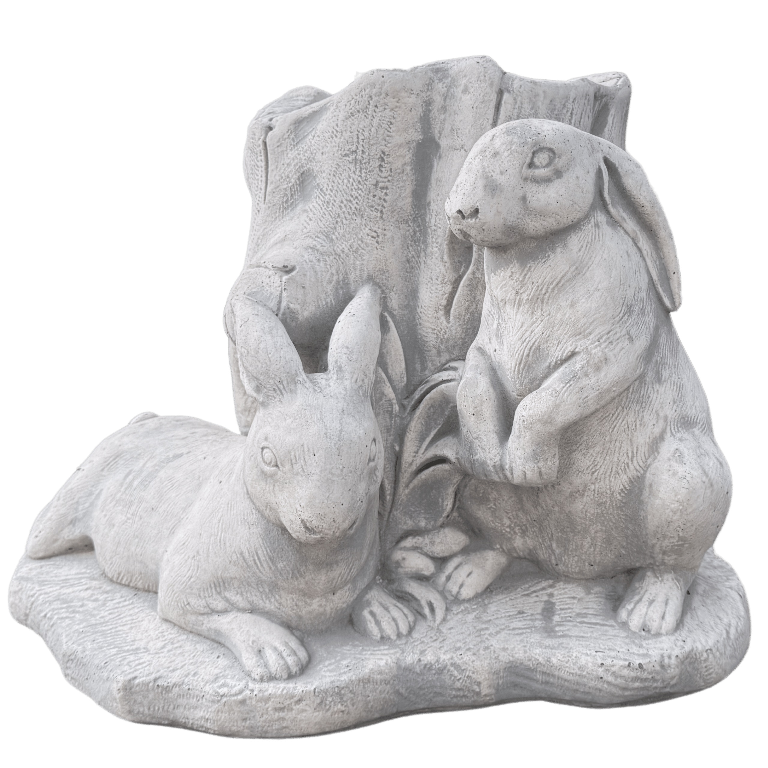 Ova dekorativna BF-37 sa zečevima, postavljena uz panj, idealna je za cvjetne aranžmane. Donosi razigran i prirodan šarm u vaš vrt ili dvorište, kombinirajući ljepotu prirode sa funkcionalnošću posude za cvijeće.
