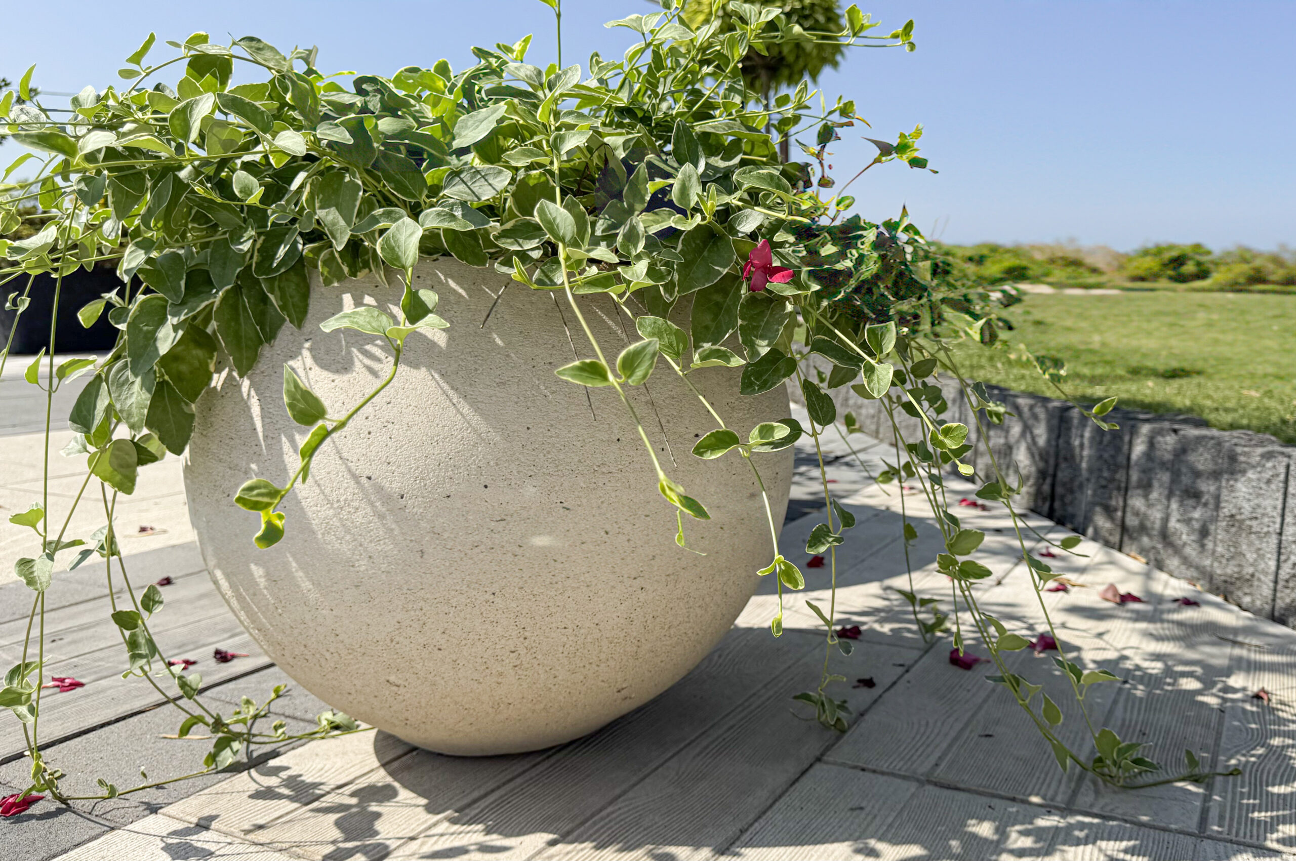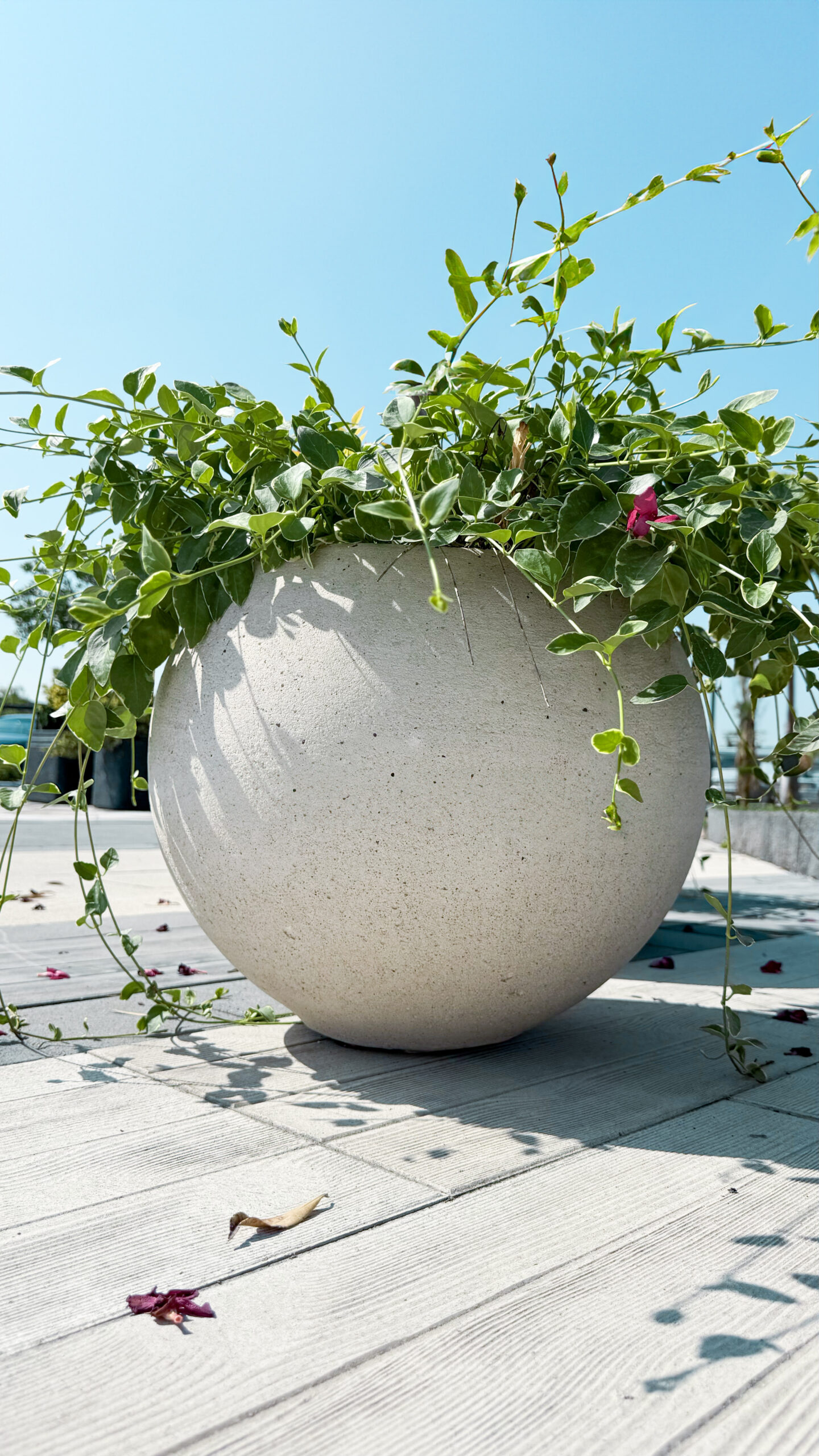 Ova betonska saksija S-340 ima zaobljen, kuglasti oblik, koji je savršen za stvaranje modernog i minimalističkog izgleda u vašem eksterijeru. Njena glatka, ali prirodno teksturirana površina dodaje suptilnu sofisticiranost prostoru. Zbog svoje čvrste strukture, saksija S-340 je izuzetno izdržljiva i idealna za vanjsku upotrebu, otporna na sve vremenske uslove.